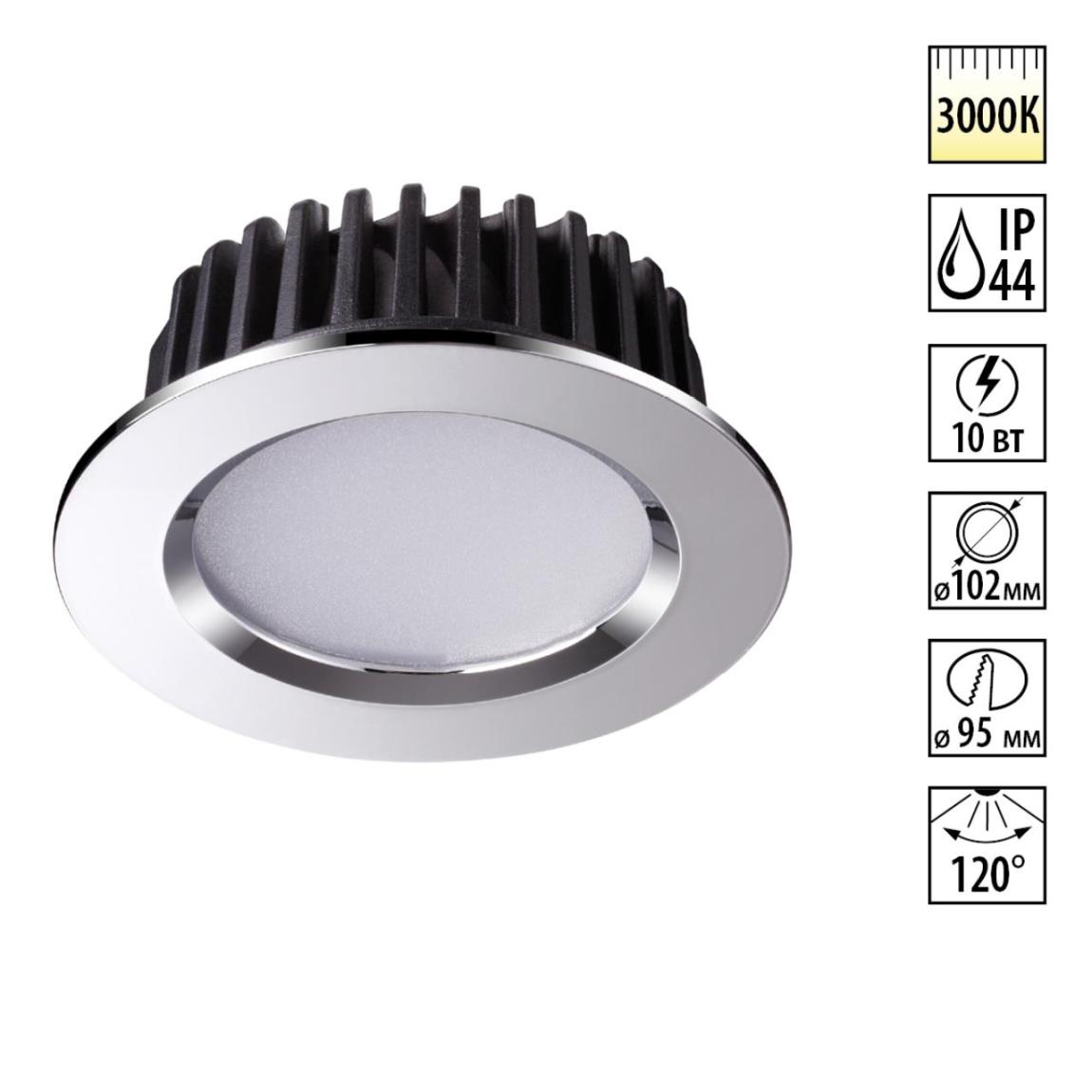 Светодиодный встраиваемый неповоротный светильник с повышенной степенью пылевлагозащиты (IP44) подходит для установки во влажные помещения.