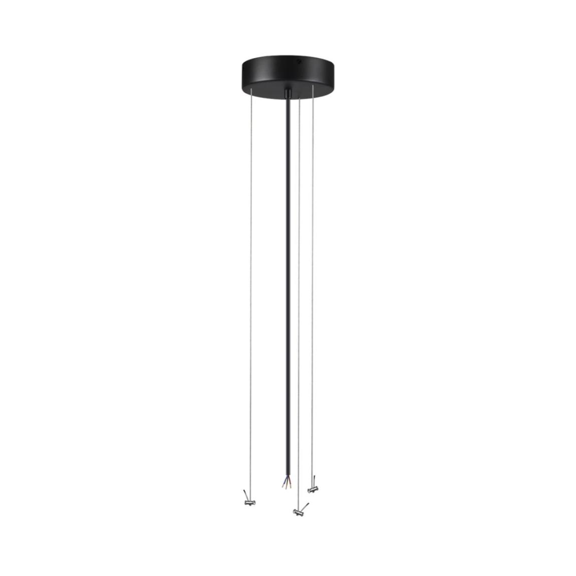 Тросы подвесного крепление для модели QUASAR LED выполнены из металла в приятной на ощупь силиконовой оплетке. Питающий провод и потолочная чаша выполнены в цвете внешнего контура корпуса светильника — угольно-черном.